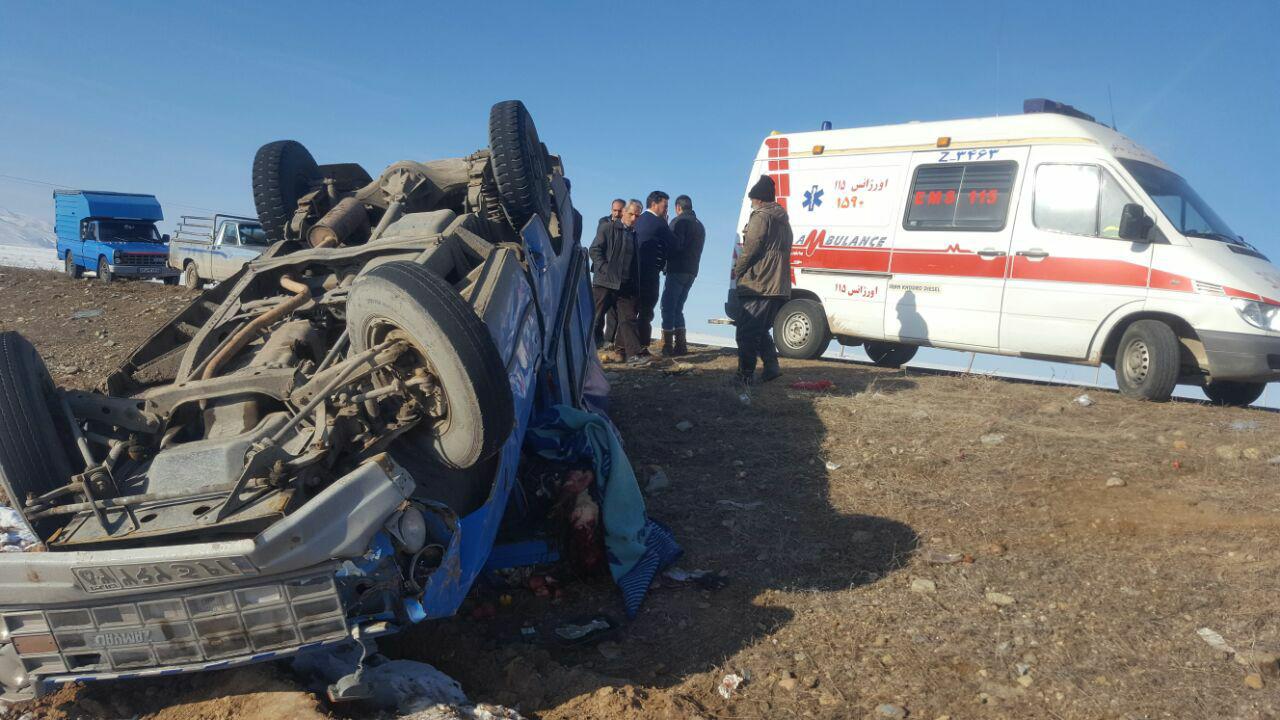 واژگونی نیسان با دو کشته ومصدوم نرسیده به روستای دیزج صفرعلی