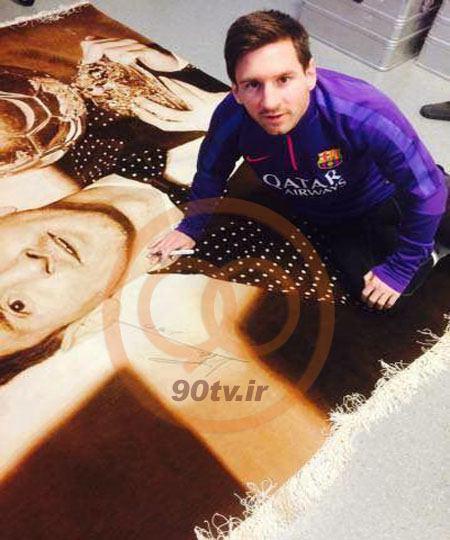 لیونل مسی قول داد که هر کس این فرش را بخرد، باخریدار و فرش عکس یادگاری می گیرد.