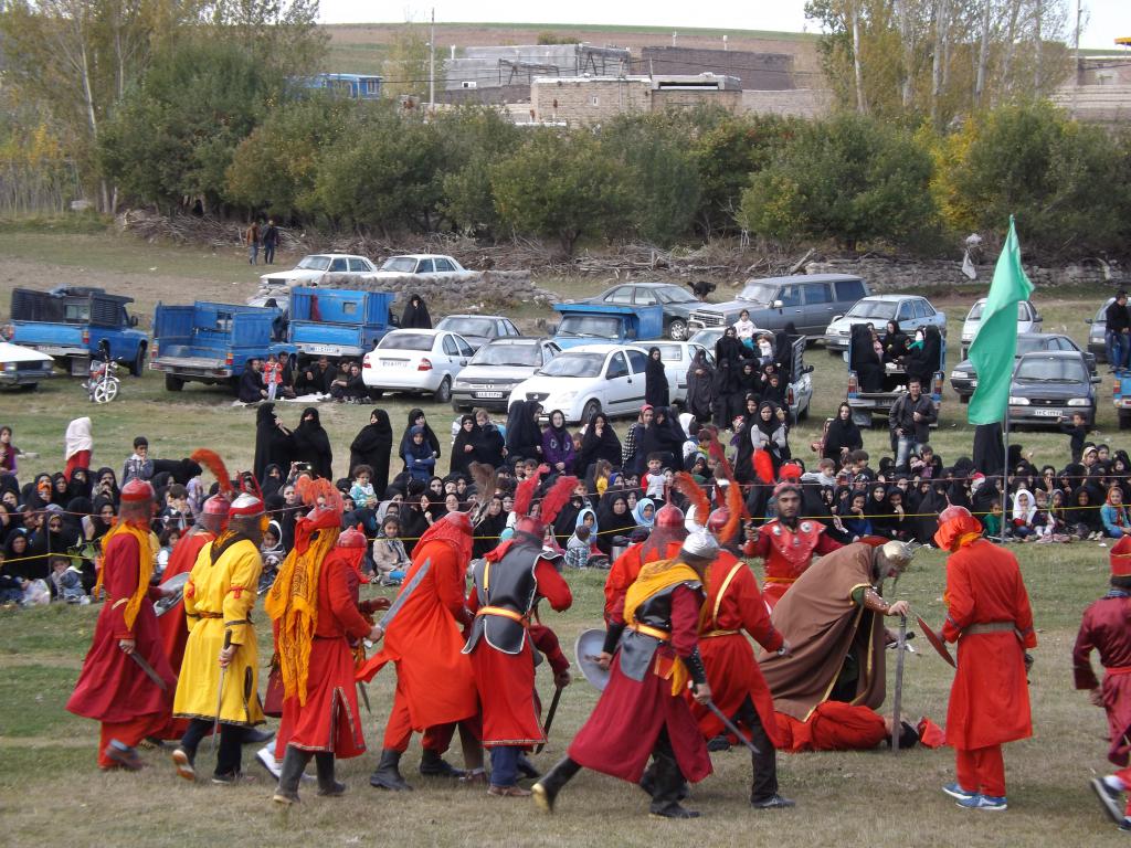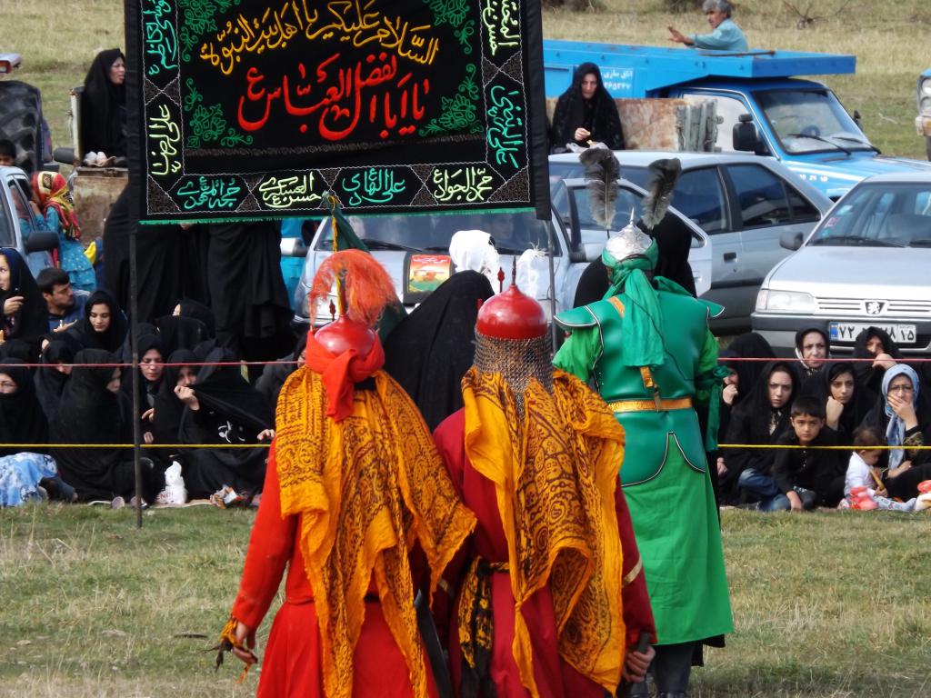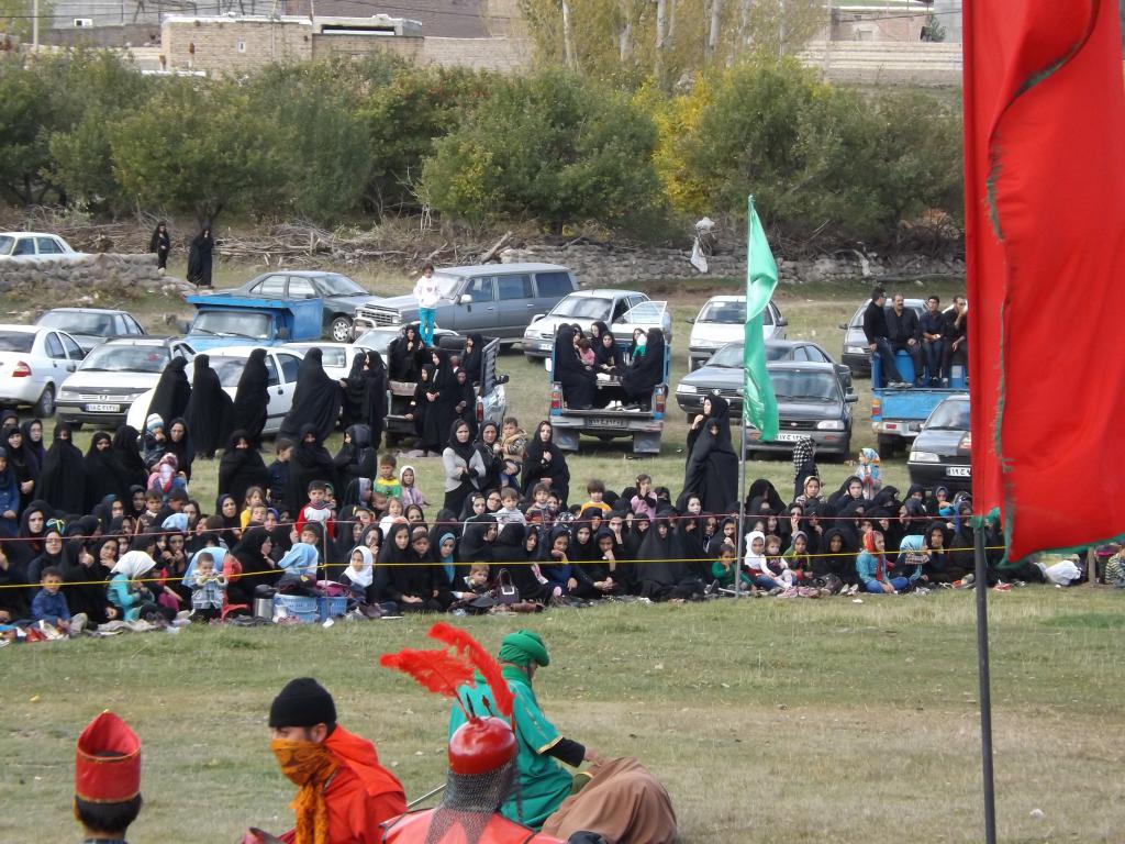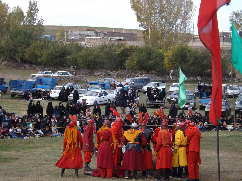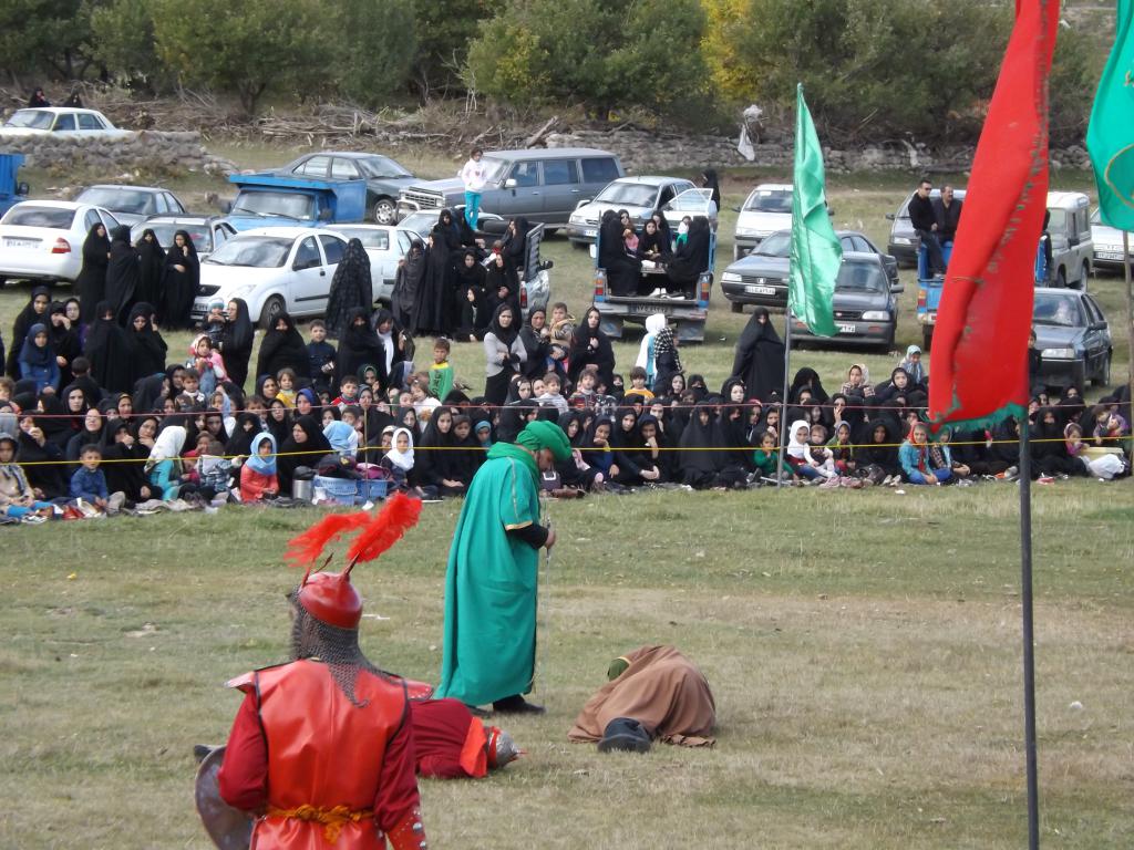 در شبیه خوانی مصیبت های که در دشت کربلا بر امام حسین (ع) و یاران با وفایش وارد آمد در قالب نمایش های آینی به مردم ارائه می شود.