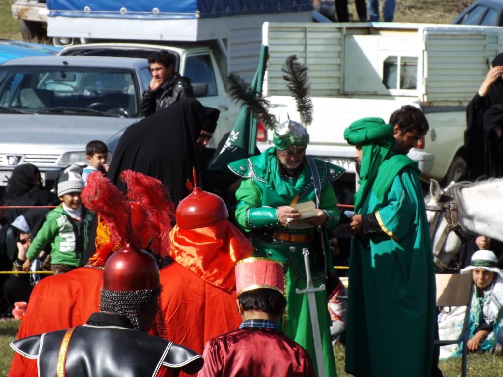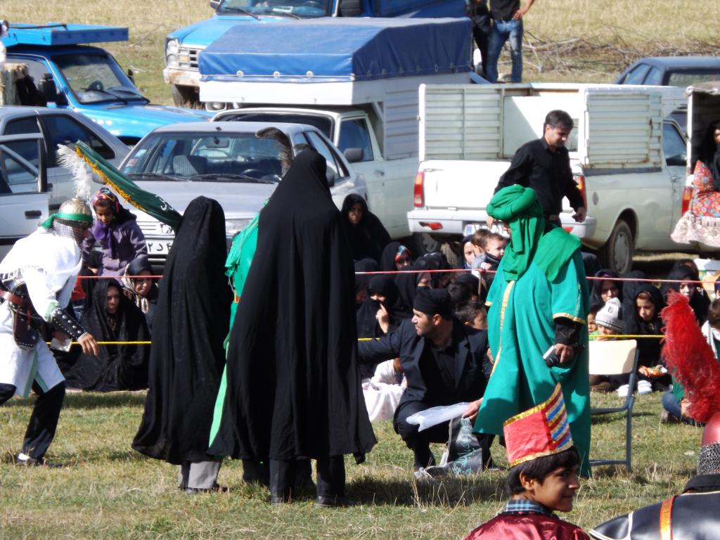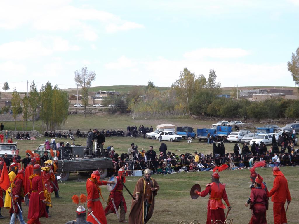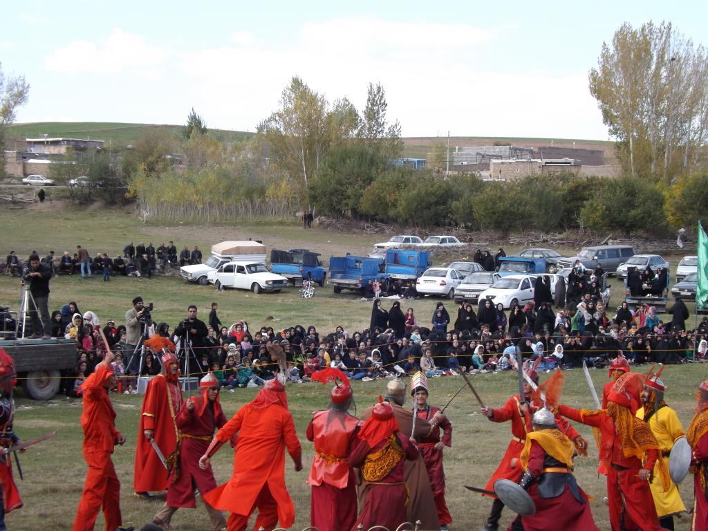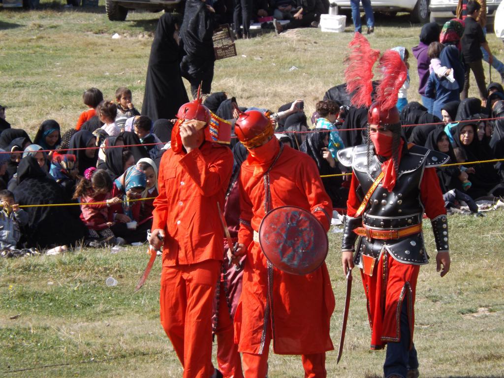در شبیه خوانی مصیبت های که در دشت کربلا بر امام حسین (ع) و یاران با وفایش وارد آمد در قالب نمایش های آینی به مردم ارائه می شود.