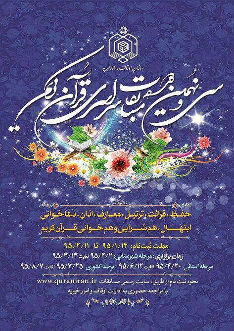 وی خاطر نشان کرد: مرحله شهرستانی سی و نهمین دوره مسابقات سراسری قرآن در بازه زمانی ۱۱ اردیبهشت تا ۱۳ خرداد ماه امسال برگزار خواهد شد.