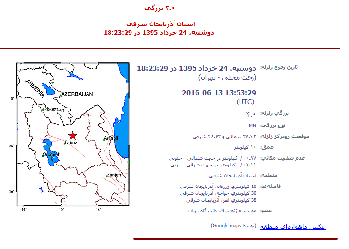 این زمینلرزه در عمق ۱۰ کیلومتری زمین و در فاصله ۱۰ کیلومتری ورزقان اتفاق افتاد.