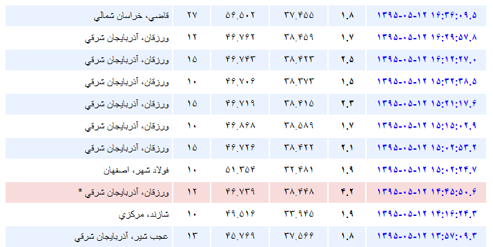 به گزارش آوای ورزقان، بعد از ظهر امروز ساعت ۱۴:۴۵:۵۰ زلزله به بزرگی ۴٫۲ ریشتر شهرستان ورزقان در استان آذربایجان شرقی را لرزاند که پس از وقوع این زمین لرزه شهرستان ورزقان در کمتر از دو ساعت هفت بار دیگر لرزید.