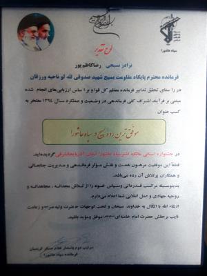 لازم به ذکر است پایگاه شهید صدوقی للهلو نیز به عنوان موفقترین رده پایگاهی در بین ردههای سپاه عاشورا انتخاب گردید.