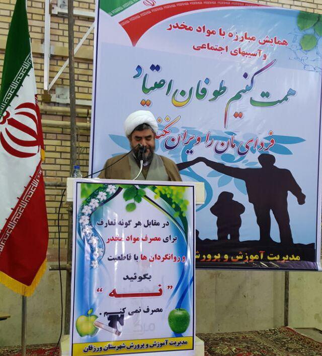 امام جمعه ورزقان نیز در این همایش با اشاره به اینکه بر اساس اعلام منابع آگاه و رسمی بیش از ۹۰۰ نوع مواد مخدر که عمدتاً صنعتی هستند تولید و توزیع میشود، اظهار داشت: برخی با هدف لحظهای خوش بودن به سمت مصرف مواد مخدر میروند ولی نمی دانند که مصرف مواد مخدر اول بد بختی است.