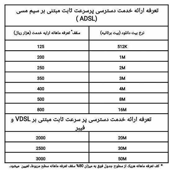 ۵٫ تأکید مجدد میشود که این تعرفه صرفا برای دسترسی ثابت است.