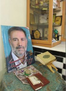 میگوید: هنوز هم حرفهای همسرم در گوشم میپیچد که در همه سخنرانیها و صحبتهایش میگفت ،«هرچه از خدا خواستهام به من داده است ولی نمیدانم چرا شهادت را قسمتم نمیکند و زمانی که در ۹ آبان ماه شهید شد و ۱۱ آبان پیکرش را آوردند، پسرم گفت، پدرم به آرزوی قلبی خود رسید، آری او که در هشت سال دفاع مقدس از قافله شهدا جا مانده بود شهادت را در حلب سوریه جستجو کرد و به آرزوی قلبیش رسید.»