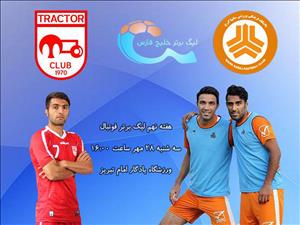 به گزارش آوای ورزقان به نقل از آناج، از هفته بیست و ششم لیگ برتر فوتبال ایران از ساعت ۱۷:۳۰ امروز (پنجشن��ه) دو تیم تراکتورسازی تبریز و سایپا البرز در...